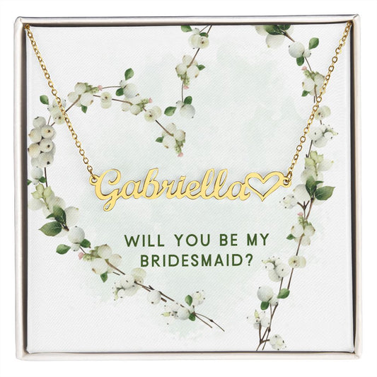 name necklace will you be my bridesmaid Name Necklace with heart(ETSY)